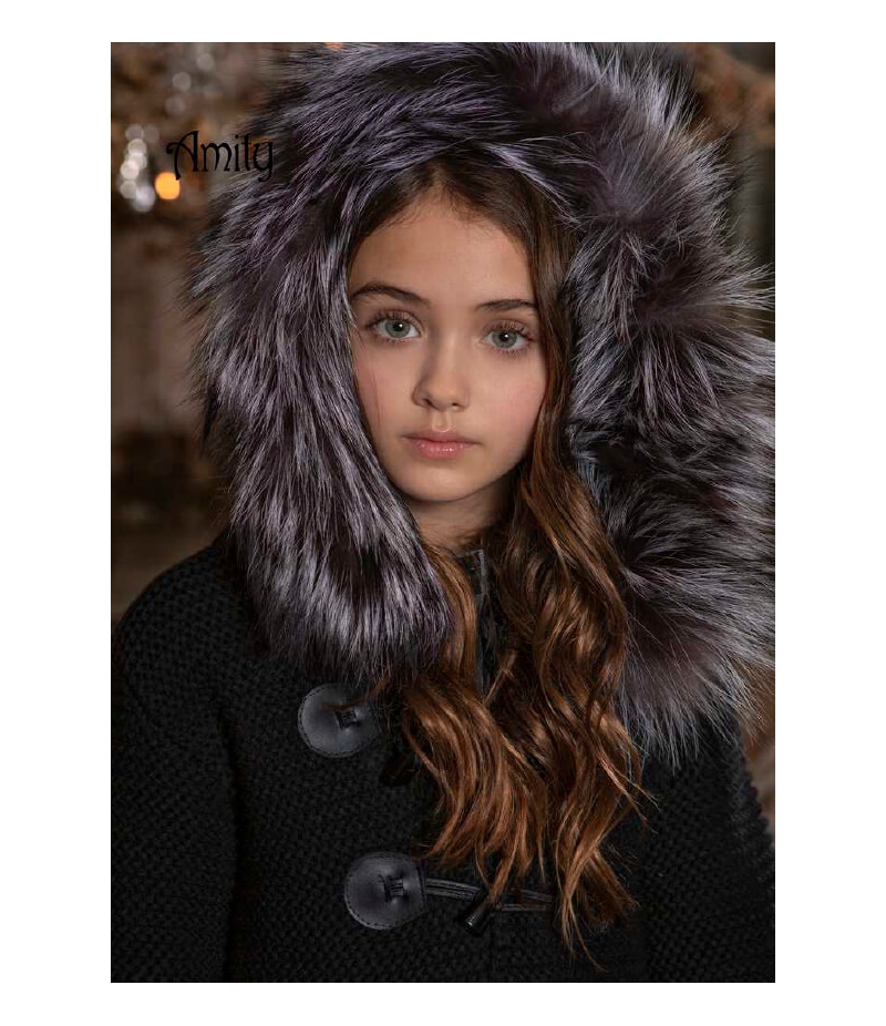 Trenca punto gordo negra con capucha pelo marmota Bella Bimba