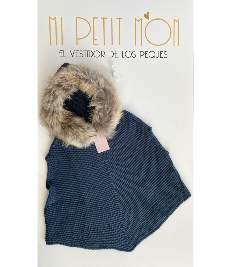 Capa punto azul petroleo con cuello marmota ENOL BELLA BIMBA