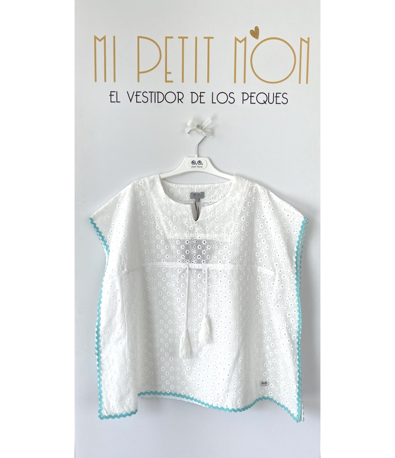 Kaftan bordado blanco y aguamarina JOSE VARON