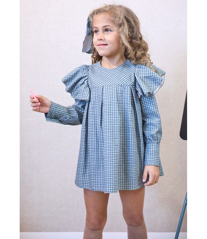 Vestido cuadros volante manga PETIT & FLOWER de LA MARTINICA BY MARIA SOBRINO