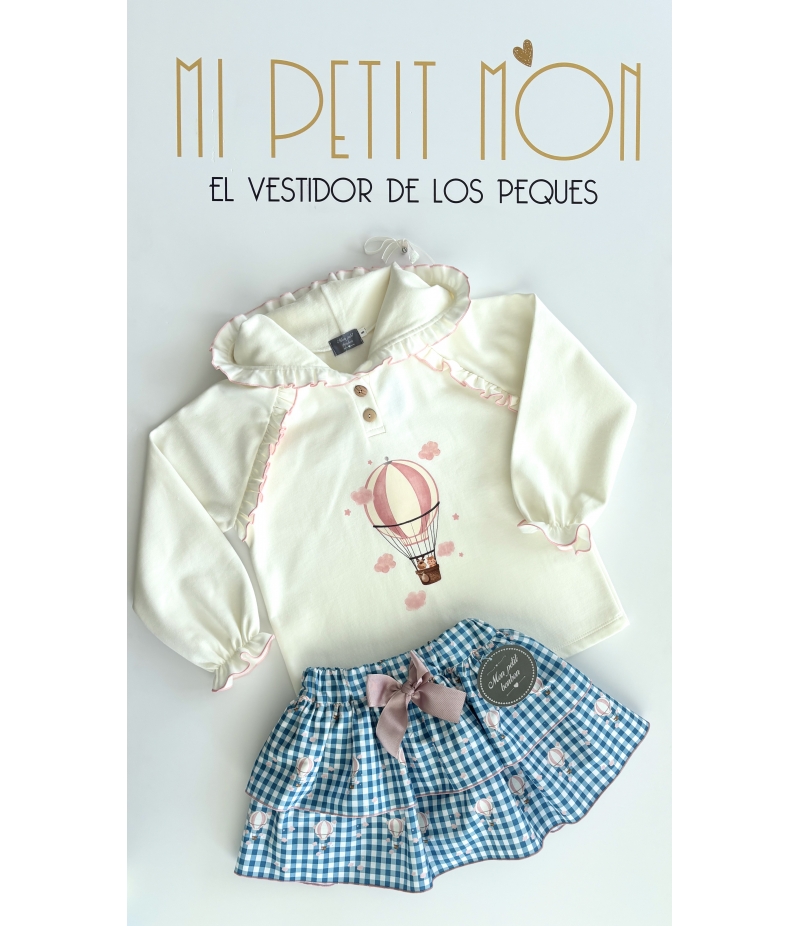 Conjunto de sudadera globo y falda pantalón vichy globos de MON PETIT BONBON