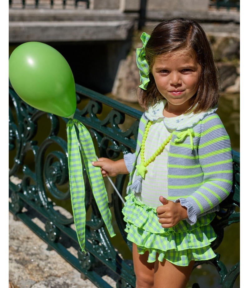 Conjunto niña de blusa flores, braguita vichy y chaqueta 3/4 rayas PESCARDINOS de LA MARTINICA BY MARIA SOBRINO