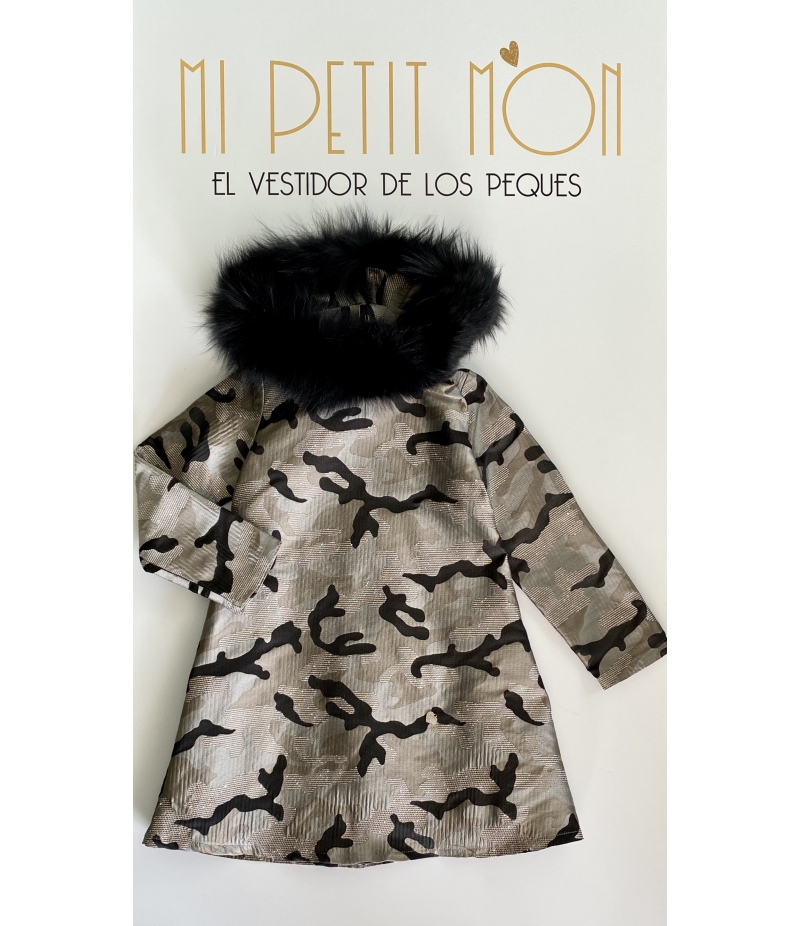 Vestido evasé camuflaje Luarca con capucha pelo marmota Bella Bimba