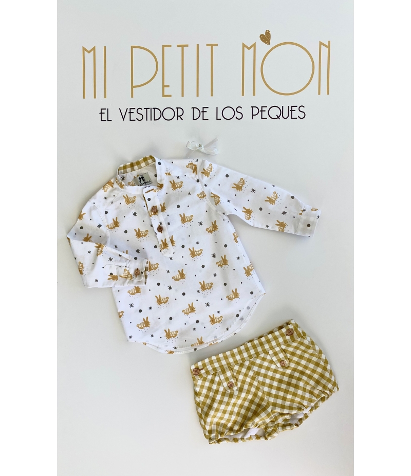 Conjunto niño camisa conejitos y bombacho MOSTAZA LA MARTINICA BY MARIA SOBRINO