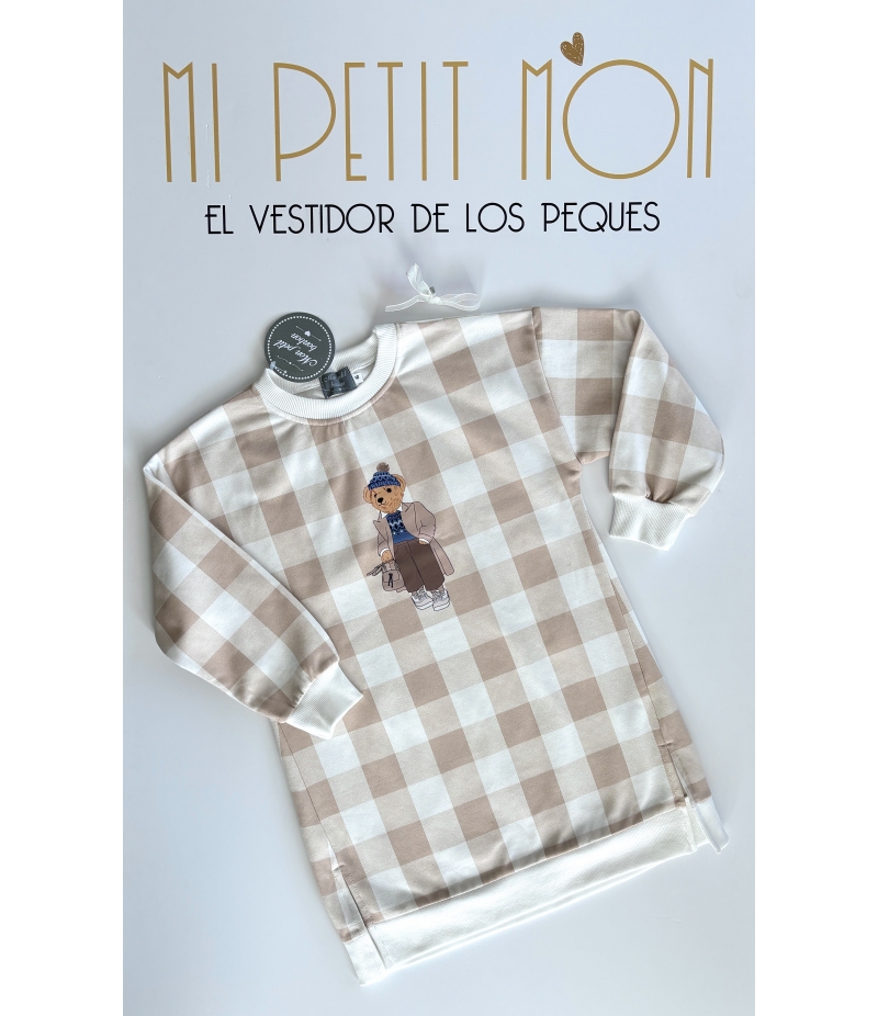 Vestido felpa cuadros Osito de MON PETIT BONBON