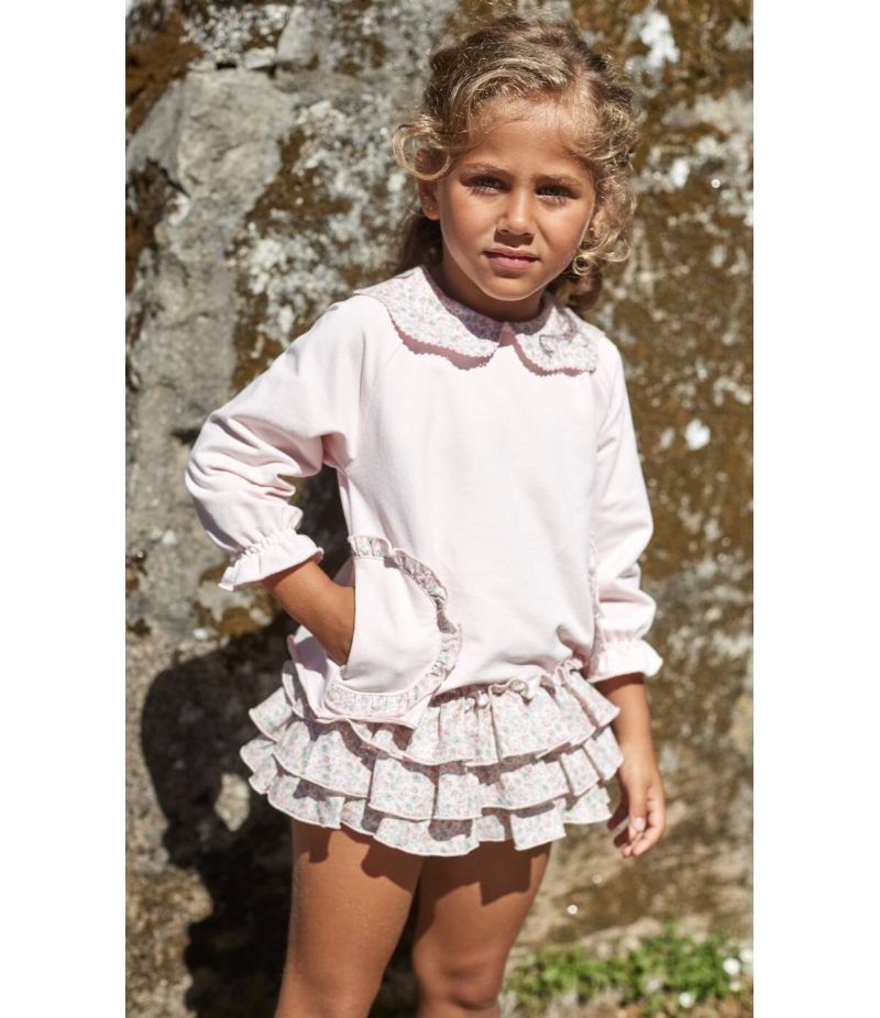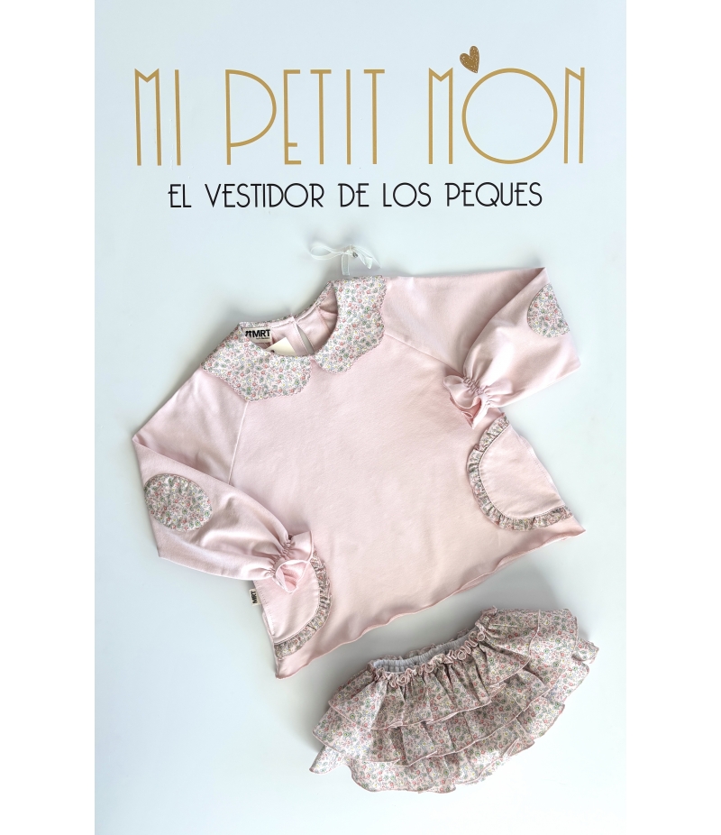 Conjunto niña de sudadera y braguita volantes ROSA Y AZUL de LA MARTINICA BY MARIA SOBRINO