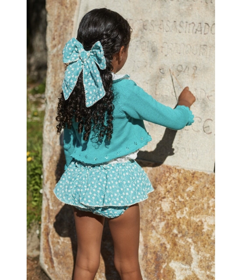 Conjunto niña de blusa, braguita volantes y chaqueta 3/4 verde ESMERALDA de LA MARTINICA BY MARIA SOBRINO