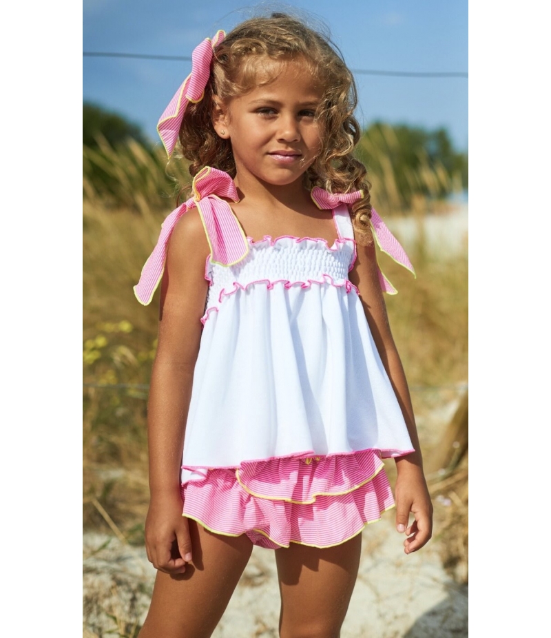 Conjunto niña de polo tirantes y braguita volantes LOS ANGELES de LA MARTINICA BY MARIA SOBRINO