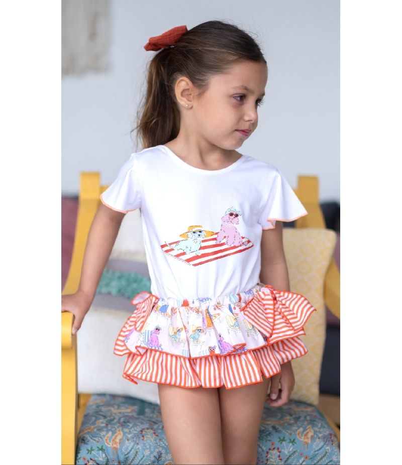 Conjunto de camiseta y braguita volantes perros de MON PETIT BONBON