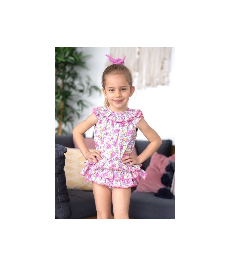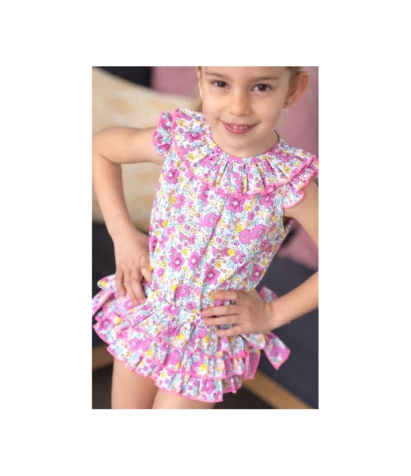 Conjunto de camisa y braguita volantes liberty fucsia de MON PETIT BONBON