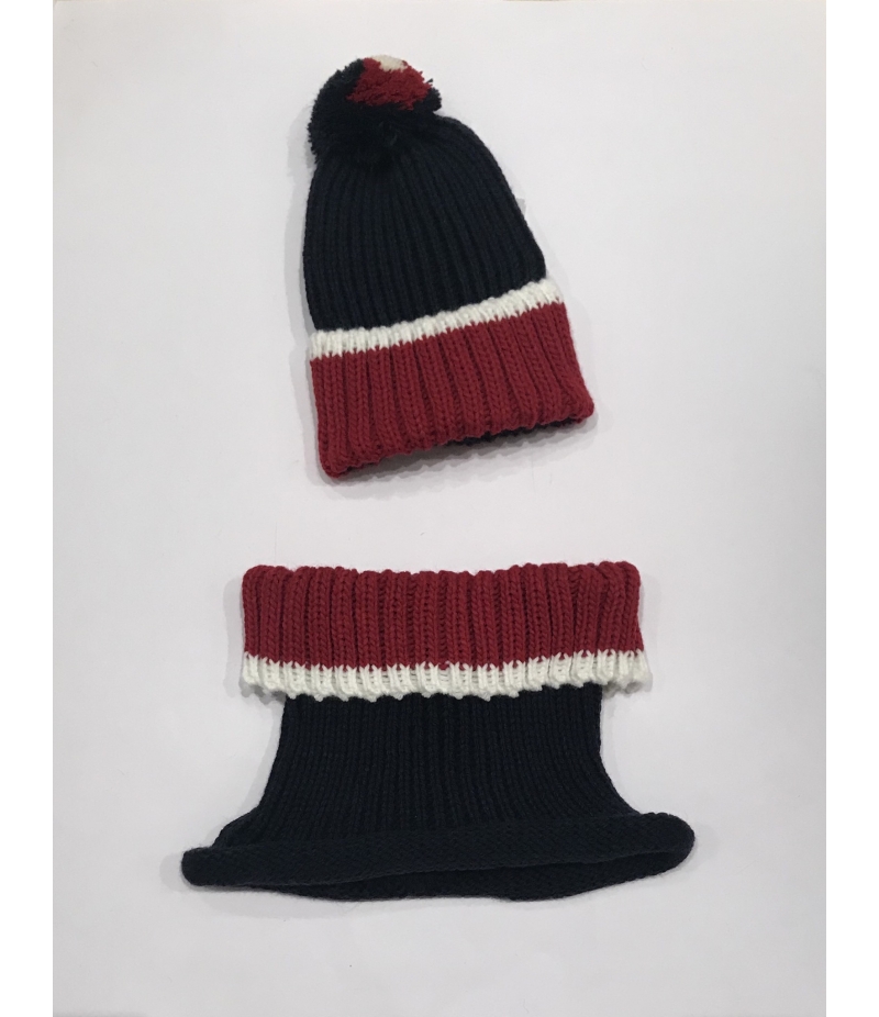Conjunto gorro y cuello Rojo y Marino Gorros Navarro